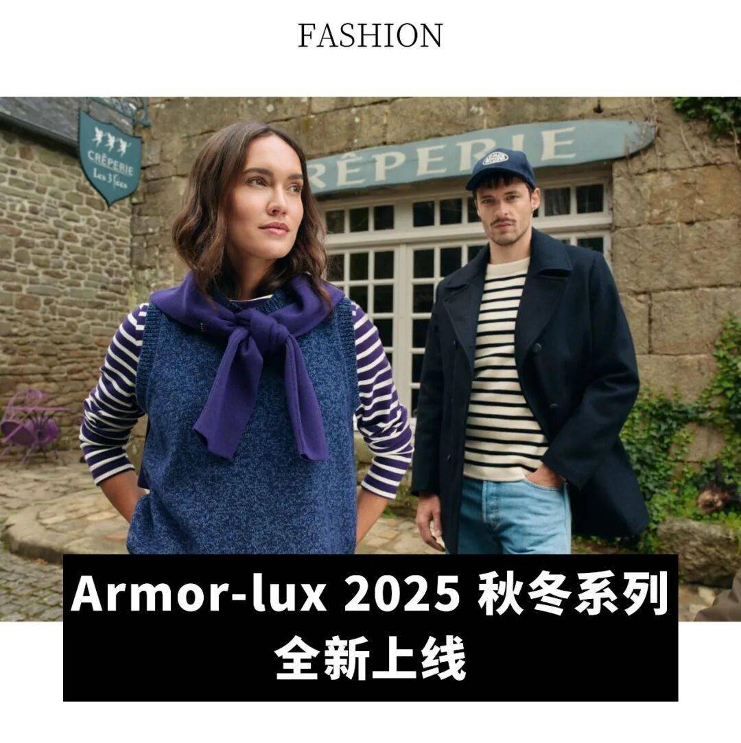 Armor-lux 正式发售 2025 秋冬系列。本季灵感以深沉的暮色之调回应大西洋海岸的辽阔与静谧,寄寓自然的恒久、希望与转变的力量,为秋冬赋予诗意的情绪和温度。从法国沿海的布列塔尼小镇洛克罗南出发,开启一段回溯故土的旅程。系列的主色调源自布列塔尼的自然景象。海军蓝如同浩瀚大海,暮紫与蓝调仿佛天空中流转的光影,而温柔的米白色则是沙滩与古老石墙的写照。在本季产品中,剪裁与材质的表达是一种理智与情感的精进。男装以利落廓形勾勒挺拔线条,传递坚毅与自信;女装则以柔和剪裁和流畅轮廓展现轻盈姿态。针织面料延续品牌经典,以麻花纹理、提花图案与羊毛质感增添肌理层次;羊毛大衣与粗针毛衣相叠,条纹衫与围巾交织,构成富有温度与层次感的叠搭艺术。(Lee)
